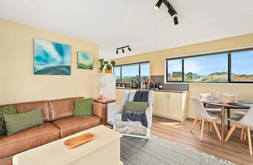 After a day of exploring or swimming, wash off the sand under the outdoor shower before firing up the covered BBQ area for a meal with a view. The fully equipped kitchen, complete with a dishwasher, makes meal preparation a breeze. A washing machine and dryer are also provided for your convenience, making longer stays effortless. Free parking ensures easy access to your peaceful retreat.