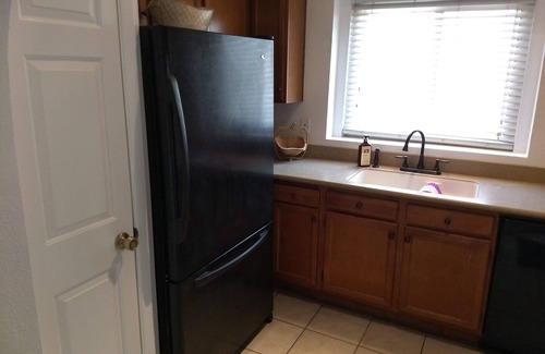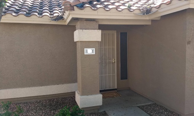 A hidden treasure in the heart of Peoria! Our lovely patio home stands alone in a beautifully maintained, quiet complex. Our unit has two bedrooms and two newly renovated bathrooms, with a sleeper sofa, full kitchen, washer/dryer in unit, covered patio, and covered parking. Air conditioning, WiFi, dishwasher, microwave. Beautiful and large pool and jacuzzi.