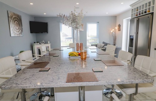 The living areas in this property consist of an open-plan living space with a kitchen equipped with a gas oven and hob, kettle, toaster, microwave, American-style fridge/freezer, a kitchen island for dining and a sitting area with a TV. There is also a second sitting room with a TV. The bedrooms consist of a super-king-size with en-suite shower, a ground-floor double with TV and en-suite shower, a ground-floor double with a TV and a family room with a super-king-size, two singles, a TV and an en-suite shower. There is also a ground-floor bathroom. Outside, there is off-road parking. WiFi, fuel, power, bed linen and towels are all included in the rental price. For your local conveniences, there is a shop within 2.1 miles, a pub within 2.5 miles and a beach within 1.8 miles. Apologies, but smoking is not permitted. Explore the delights of Northern Ireland with a retreat to Ballyrocket Lodge.