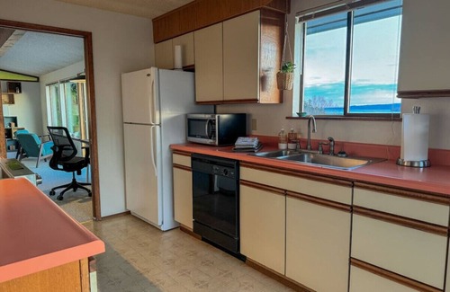 Tucked into the quiet coastal neighborhood of Dewey Beach in Anacortes, Rosario Ridge is a charming two-bedroom home with timeless character and modern touches. With wide windows that bring in views of Skagit Bay and Whidbey Island, this peaceful retreat is perfect for couples, friends, or families looking for a laid-back Pacific Northwest getaway.