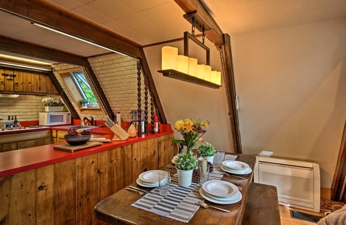 Breathe in the natural beauty of Bartlett with a stay at this 2-bedroom, 1.5 bath vacation rental! Only 2 miles from Attitash Mountain Resort, this A-frame cabin offers 2 additional sleeper sofas and easy access to endless trails and ski slopes. Vaulted ceilings create an airy interior, complete with a full kitchen. Delve into all this White Mountain destination has to offer with hiking, swimming, outlet shopping, a trip to Storyland or a ride on the Conway Scenic Railroad, located minutes away!