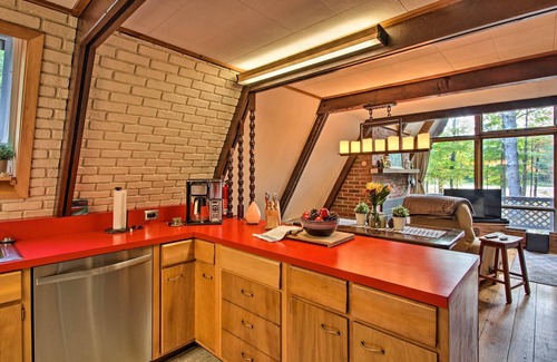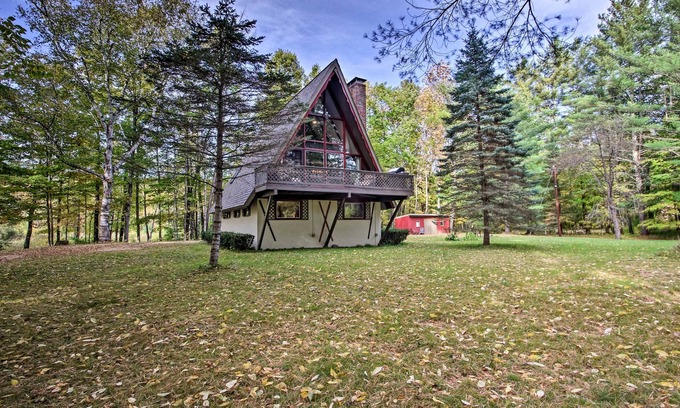 Let the serene woodland surroundings, including beaver dams, brooks, and a duck pond, of this A-frame abode that's ideal for ski bums, outdoor enthusiasts, and family gatherings be next on your travel itinerary!