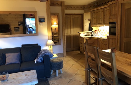 Méribel Village - Apartment. Ground floor. Ski-in/ski-out. 2 bedrooms. South-facing balcony. 1 bathroom, 1 shower room, separate WC, fully equipped kitchen (dishwasher, microwave, oven, fridge, 4 zone ceramic hob). Combined washer/dryer. TV, iPod docking station, Blue ray DVD, free private WiFi in the apartment. Ski locker. Parking place in locked underground garage. Lift. Sleeps 4. Free access to the sauna , hammam, fitness and heated indoor swimming pool.