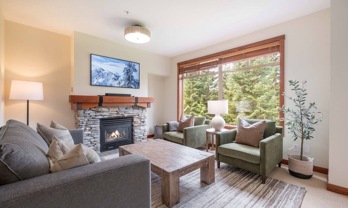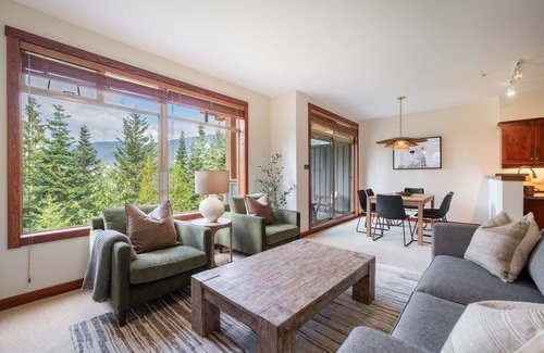 Enjoy ski-in/ski-out access near the Creekside Gondola for effortless Whistler Mountain adventures. The balcony overlooks Whistler Mountain's base, perfect for sipping coffee and enjoying the mountain air.