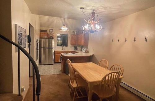 Columbine Inn Room 201 located at resort center. Features three queen beds with three full baths and kitchen, deck, fireplace, spiral staircase up to a loft, dining room, and a living room. Ski right to your room and stay in the heart of Powder Mountain. Enjoy a nice fire with views of the Sundown Ski lift at night. Private deck with storage closet. On-site free front row parking, free WiFi, free laundry facilities. Additional rooms available.