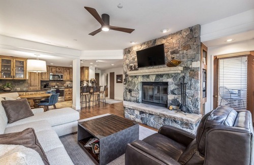 Exquisite furnishings, a just-completed major renovation, and a spectacular west-facing mountain view make our unit one of the most sought-after in the area. You'll enjoy knotty alderwood cabinets, polished granite counters, wide-plank ash hardwood floors, a spectacular wood-burning stone fireplace, stunning bathroom tile artwork, leather/chenille seating, and a balcony. A 55" OLED 4k TV with Dish Network, streaming capability, DVD/Blu-Ray player, and B&W Speakers, help ensure your experience will be memorable.