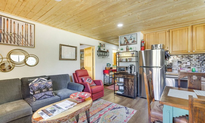 Enjoy year-round outdoor fun and beautiful mountain views at this Red River vacation rental. This 2-bedroom, 1-bathroom condo is in the heart of town and just a quick walk from chair lifts, parks, and local restaurants! Go for a mountain horseback ride in the warmer months, hit the slopes in the ski season, or explore the trails on foot or snowmobile. You’ll have access to plenty of community amenities across the seasons, like an outdoor pool, a shuttle service, and on-site laundry facilities.