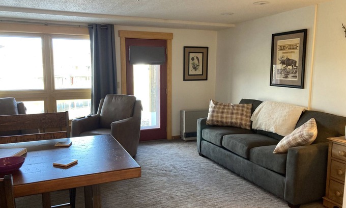 Ski in/Ski Out condo overlooking pond and Snubber chair lift. Directly across from Snowbrook association pool and hot tubs. One bedroom, one bath. King bed, twin bunk beds and queen size sleeper sofa.
