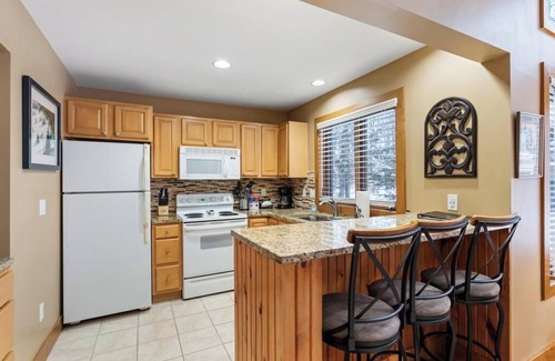 This well-appointed condo is nicely decorated and includes new living area furniture, a fireplace and lots of space for everyone. It includes a fully remodeled kitchen with granite counter tops and a bar. The entryway has been remodeled to house skis, boards and all your ski gear. It sleeps 16 in beds and 18 with the sleeper sofa. This condo rents as a full unit and has 3 levels with 2 kitchens and 2 dens so there is plenty of room to spread out and enjoy different activities.