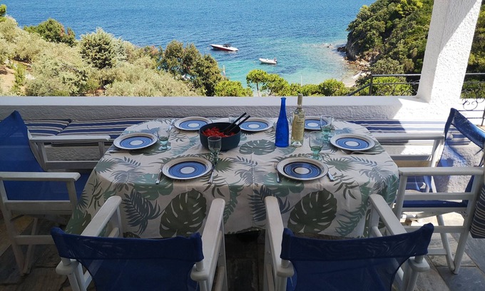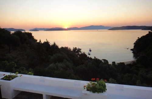 Skiathos: Beautiful Villa with access to private beach is located in Kanapitsa. Skiathos: Beautiful Villa with access to private beach provides accommodation, featuring Internet, View, Oceanfront, among other amenities. This House features Internet, View, Oceanfront, to make your stay a comfortable one.