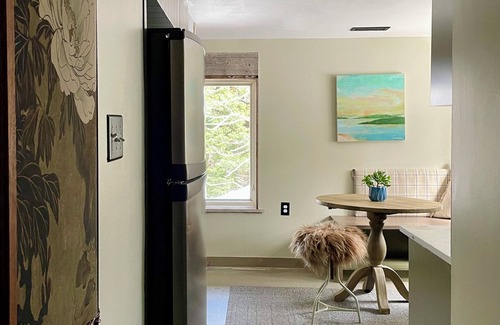 Bright, open, and full of natural light, this house enjoys a peaceful and wooded location close to adventure in winter, spring, summer, and fall with design details like custom furniture pieces, lime washed walls and a tadelakt bathroom. Moose and deer can often be seen within yards of the view from your Adirondack on the stone patio.