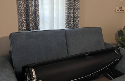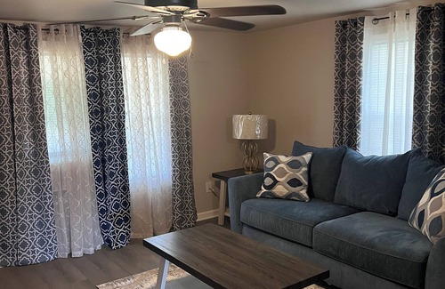 This 1-bedroom apartment in Rockingham is perfect for your escape. With heating, AC, iron, and WiFi, guests can relax in the beautiful living room with a comfy sofa bed. It's easy to see why you'll be able to unwind at our place.