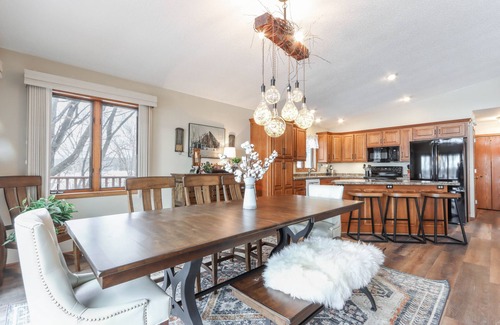 Gorgeous 3+ bed, 2 bath retreat nestled on dead end road on fully recreational 6348 acre lake - Eau Pleine Reservoir. ~15 min to Mosinee Airport, 20 min to Marshfield Clinic. Kitchen w new appliances opens to dining/family rooms w tv, fireplace, wall of new patio doors overlooking the lake. En suite king bedroom w walk-in closet & bath with shower. 2 additional bedrooms; queen bedroom w closet and bunk room can be set up w 4 bunk beds or full bed and 4 bunk beds. Walkout game room w pullout queen couch w tv, wetbar & pool/air hockey/ping pong. Fully furnished. Big deck, grill, flat yard to water. Enjoy kayaking, fishing, boating, tubing & firepit. Pets welcome. New dock. Pontoon Boat, Fishing Boat and UTV Rental available. Bring snowmobiles, atvs & skis. Snowmobile trail access in neighborhood, great ice fishing and easy access to golf courses, Nine Mile & Granite Peak for skiing and more!