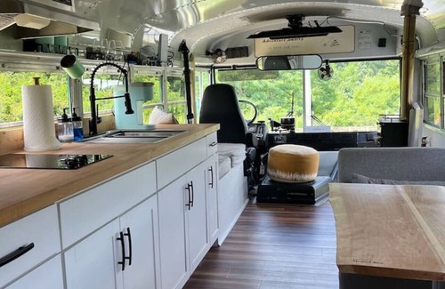 Skoolie New River Gorge - Greenie is located in Elton. Skoolie New River Gorge - Greenie provides accommodation, featuring Parking, Pet Friendly, Security/Safety, among other amenities. This House features Parking, Pet Friendly, Security/Safety, to make your stay a comfortable one.