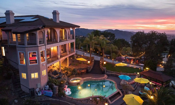 Sky Candy Estate - Sunrise+Sunset Views, Pool, Spa has 6 Bedrooms , 7 Bathrooms, and max occupancy of 18 people. The minimum rental for this property is 1 nights, but this can change depending on the season you plan on staying. Previous guests have given good rated it, and VRBO labeled it a top-rated House because of the excellent services rendered by the owner or manager of this House, and has consistently provided great experiences for their guests. Most families or guests that use it recommend it to their friends and some of them are repeat guests. House has a friendly neighborhood, and the Escondido has interesting places to visit. If you want to learn more about the House in Escondido, such as places to visit and things to do nearby, you can check below to learn more.