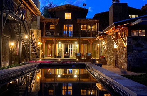 Come relax in our mountain residence on high mesa grasslands in the heart of the Rockies. This stunning luxury home sits on 35 acres with expansive views of the Elk Mountain range. The natural materials used to build this home speak to the clean living that abounds here in the Roaring Fork Valley. With red oak flooring, trusses and beams crafted from the wood of a Midwest barn, the open-plan is designed to maximize the warmth of the south-facing windows: part solar, part geothermal-heated, a home built for the future. With two master suites, each complete with walk-in closets and private decks looking out on ranchland pastures framed by Mount Sopris, the property boasts 5 bedrooms, 6.5 bathrooms, two living rooms, a workout space for stretching, double steam shower, and seven fireplaces, including three imported English Rumford stone hearths - perfect for year-round relaxation. Fifteen minutes to Whole Foods, 45 minutes to the slopes, with gorgeous spaces to enjoy right on the property. Every detail of the home is tuned to the play of light on the 8,278 square feet of architecture, a celebration of timber, iron, stone, clay, and open space. At the heart of the property is an infinity party pool with waterfall, adding warm waters to the ever-present elements of earth and sky. Please, however, no weddings, elopements, or any kinds of events at our home. These are prohibited.