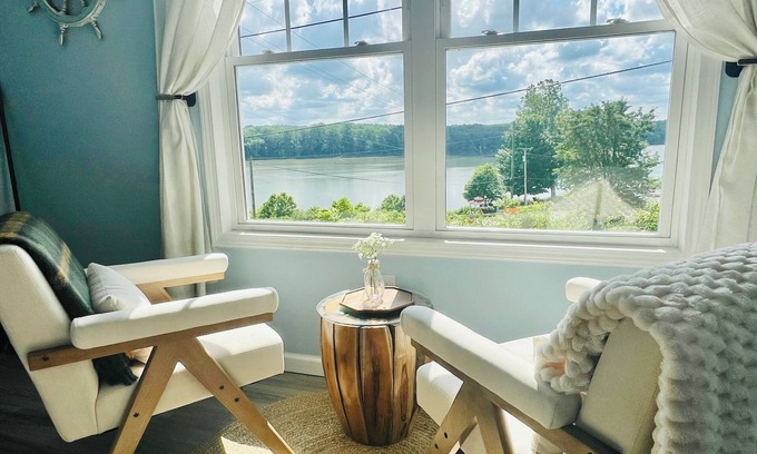 Cozy up on the chair in front of wide window views over looking the Ohio river and Kentucky bluegrass state! This A frame Sky-parlor is quiet and peaceful. It has everything you need to relax and enjoy your morning coffee in an inviting and warm living space. This is the most gorgeous river view in this small historical town! Explore downtown historical aurora, with the river walk right by the house. Rent bikes , walk to enjoy the scenery or take your dog for a nice long walk. Perfect N snowboarding/skiing,Green Acres Kayaking. CVG airport, 2 casinos nearby, Creation Museum/ARK! Hiking,fishing, golfing , wine tasting and Bengals, cincy Zoo, Reds
