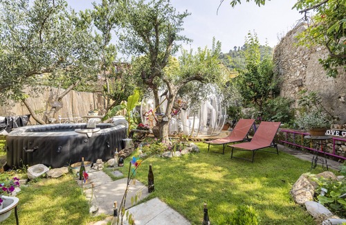 Your stay at Sky Room Carrara includes luxurious amenities designed to elevate your special occasion. Imagine a private garden filled with fruit trees, complete with a hot tub that features 140 bubble jets for a soothing hydromassage. You will find eco-friendly products throughout the property, ensuring a sustainable celebration. Your booking also includes thoughtful touches such as a kit with bathrobes, slippers, and a complimentary bottle of prosecco to toast to your new beginnings. With access to a private bathroom, changing area, and a bar fridge stocked with refreshments, every detail is catered to for your enjoyment and relaxation.