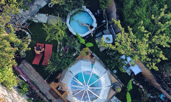 Enchanting Garden: The lush private garden spans approximately 300m², complete with fruit plants and a tranquil setting, making it ideal for intimate gatherings or romantic moments.