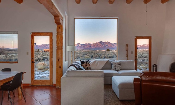 Embark on a New Mexican adventure at 'Desert Oasis,' a serene Adobe sanctuary nestled between landmark mountains and a shimmering desert in Ranchos de Taos. Rich in Southwestern charm and cozy luxury, our 3-bedroom, 2-bath retreat serves as a perfect base for up to 8 guests to experience Taos' vibrant culture and breathtaking natural beauty. Discover famous sites like Taos Plaza, Rio Grande Gorge Bridge, and Taos Country Club, all just a stone's throw away.