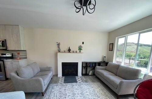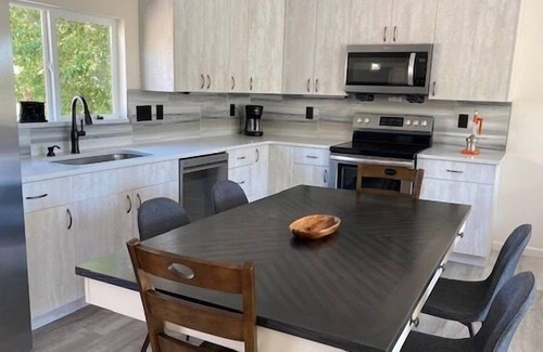 This stunning property features a range of amenities designed to enhance your stay. Enjoy outdoor living on the elevated deck equipped with furniture, an outdoor dining table, and a propane BBQ grill—perfect for romantic dinners or gatherings with loved ones. Inside, you'll find a spacious living area with a 75" flat-screen TV and cozy fireplaces. The fully stocked kitchen includes modern appliances and essentials, ensuring you have everything you need for your celebration. With comfortable sleeping arrangements for up to eight guests, including a King bed and multiple bedrooms, you can share your special occasion with family and friends. Plus, we’re pet-friendly, so your furry companions can join in the festivities!
