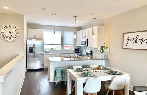 3 miles to Infamous Broadway! This is a great space for a couple of families, 3 couples or 8 friends to travel and stay together with fantastic downtown views while you're there. 2 Story Condo -2nd floor spacious Kitchen and living room for gathering have a queen sleeper sofa, 2 futon sleepers and 1/2 bath. 2 private bedrooms on first floor-one king, one w/full bed with twin on top. Large full bathroom with double vanity and shower/tub combo. Pet welcome $35 per night.