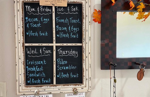 Offering mountain views, SkyRidge Inn in Torrey features accommodations and a garden. A hot tub is available for guests. The bed and breakfast offers rooms with air conditioning, free private parking, and free Wifi. All units come with a seating area, a flat-screen TV with streaming services, and a private bathroom with bathrobes, hot tub, bath, and shower. A dishwasher and fridge are also featured, as well as a coffee machine and a kettle. At the bed and breakfast, the units are fitted with bed linen and towels. À la carte and continental breakfast options with warm dishes, fresh pastries, and pancakes are available. For visitors looking to embark on day trips to nearby landmarks, the bed and breakfast provides a selection of packed lunches. Guests at SkyRidge Inn can enjoy hiking nearby, or make the most of the sun terrace.