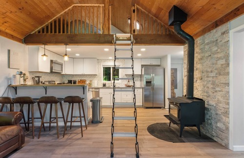 Guests have exclusive access to the cabin & outdoor spaces of the cabin. The cabin also has a Detached Unit which is connected to the main cabin by stairs. Detached Unit has a Queen Bed, Equipped Kitchen, Bathroom & Seating Area.
