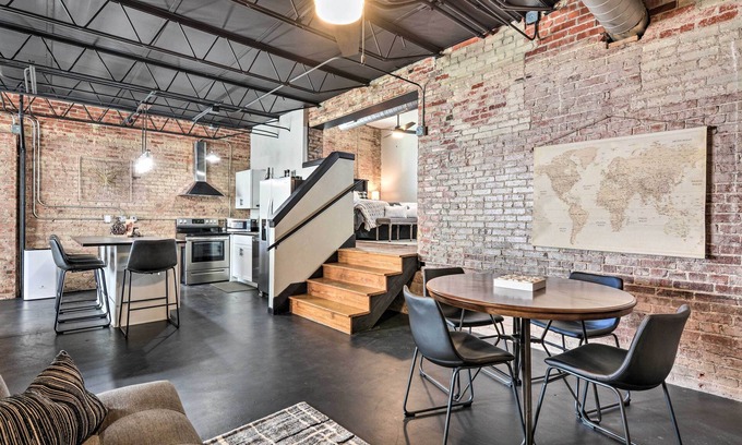 Experience Springfield with this stylish vacation rental as your home base! Boasting a cozy interior with ample natural light, exposed brick, and a loft sleeping area, this 1-bathroom studio is ideal for a couple's getaway or solo retreat. Venture out and you can explore Historic Downtown Springfield, visit local restaurants and breweries, and see the History Museum on the Square. Afterward, enjoy a home-cooked meal and a relaxing movie night, or hit the town and head to nearby nightclubs!