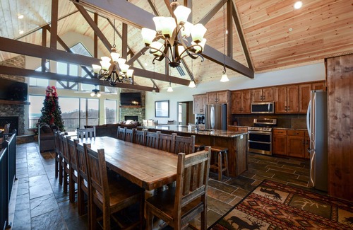 Welcome to Sleep 36 - 16 King Beds - Indoor Pool - 3 min to SDC!, a stunning property by Vanessa's Vacation Homes designed with weddings in mind. With the capacity to comfortably host up to 36 guests, this magnificent lodge is ideal for large wedding parties or intimate family gatherings. Imagine celebrating your special day surrounded by breathtaking views of Table Rock Lake, all while enjoying luxurious accommodations that make every moment feel unforgettable.