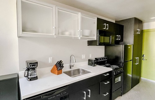 Luxurious studio apartment is located in the heart of downtown Springfield near all the best local attractions. Our Sleepover unit comes fully furnished with all the best amenities, toiletries and complementary goods to make your accommodation an unforgettable experience. The unit has a bed, bathroom, living room area, kitchen, and in unit laundry!
