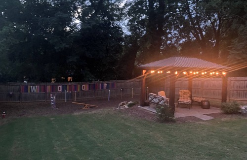 1 amazing backyard perfect for cornhole, lawn games, and dancing under the stars!