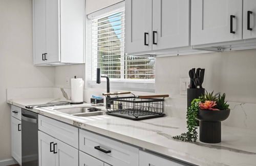 Guests have full access to the unit and all amenities. On-site parking is available with space for up to five cars in the driveway, along with plenty of street parking.