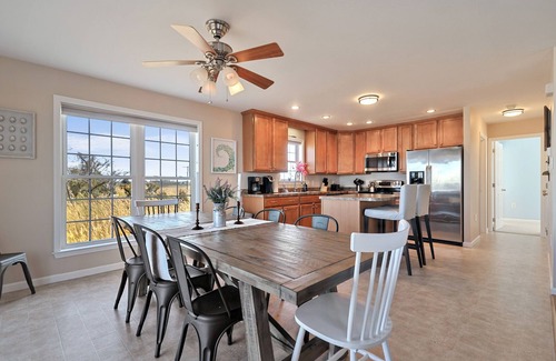 Gorgeous sunrises and sunsets at Holiday House! Located in the relaxing Bowers Beach and conveniently located near the DE Turf complex, Delaware State University, and Dover Airforce base & Speedway. Just a few minute walk to Bowers Beach, JPs Wharf, and local parks. Features beautiful Delaware Bay views from back deck and breathtaking views of the local nature reserve from front. Enjoy what nature has to offer regardless of season. At night, wind down star gazing at perfect clear skies. With room for one or multiple families, you’ll feel refreshed after a stay at Holiday House!