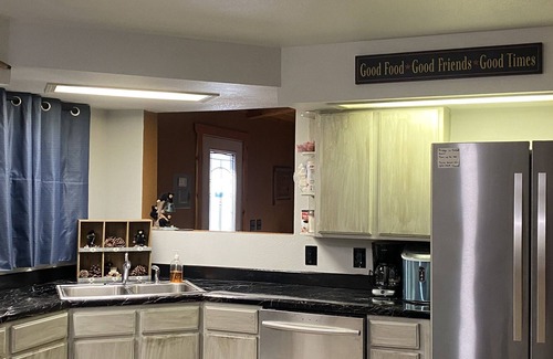 This Listing is for the whole place. That includes the lodge with the additional four hotel-style guest rooms. There is a large kitchen, dining room, and a game room with a pool table. Enjoy the beautiful views in the evening while sitting on the wrap-around deck.