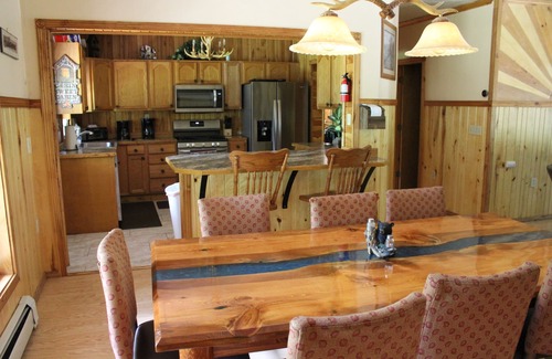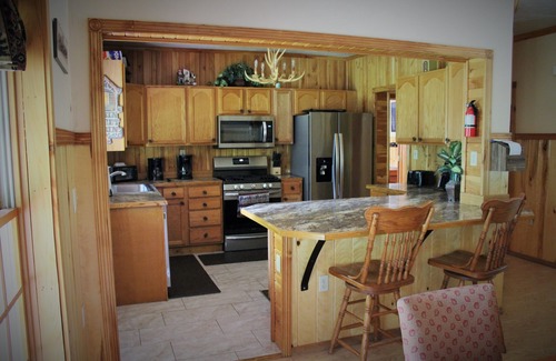 This beautiful 4200 sq. ft.. 7 bedroom and 4 full baths in a lodge setting with wrap around porch, with 3 acres is sure to appeal to all. Perfect for groups, or multi- families to stay comfortably. Add on side by side rental during your stay