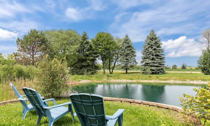 Adults can cozy up at the exterior propane firepit or relax in the hot tub on the spacious patio. Take your morning brew or evening cocktail overlooking the serene pond on the property.