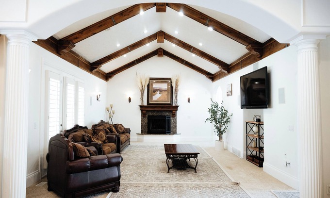 Best-rates for the South Jordan house starts from $1,086 per night with includes Balcony/Terrace, Hot Tub, Kitchen, Laundry, Air Conditioner, Parking, Pet Friendly, Wellness Facilities, Barbecue/Outdoor Cooking, Security/Safety, Bedding/Linens, Guest Services, Child Friendly, Sports/Activities, Fireplace/Heating, Internet, TV with all other amenities. Perfect for Weddings is committed to ensuring every guest experiences a comfortable and extraordinary stay, whether planning a romantic getaway, a honeymoon, a pet-friendly stay, or celebrating with the entire wedding party.