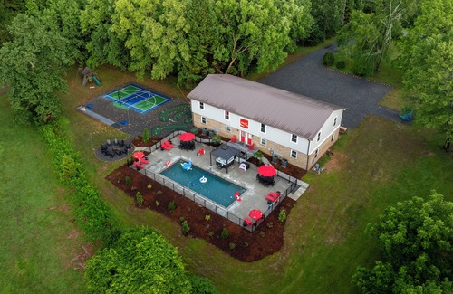 Sleeps 30! Themed Home w/Pool, Hot tub, Pond, Pickleball, Putt Putt, Arcades has 12 Bedrooms , 6 Bathrooms, and max occupancy of 30 people. The minimum rental for this property is 1 nights, but this can change depending on the season you plan on staying. Previous guests have given good rated it, and VRBO labeled it a top-rated House because of the excellent services rendered by the owner or manager of this House, and has consistently provided great experiences for their guests. Most families or guests that use it recommend it to their friends and some of them are repeat guests. House has a friendly neighborhood, and the Barium Springs has interesting places to visit. If you want to learn more about the House in Barium Springs, such as places to visit and things to do nearby, you can check below to learn more.