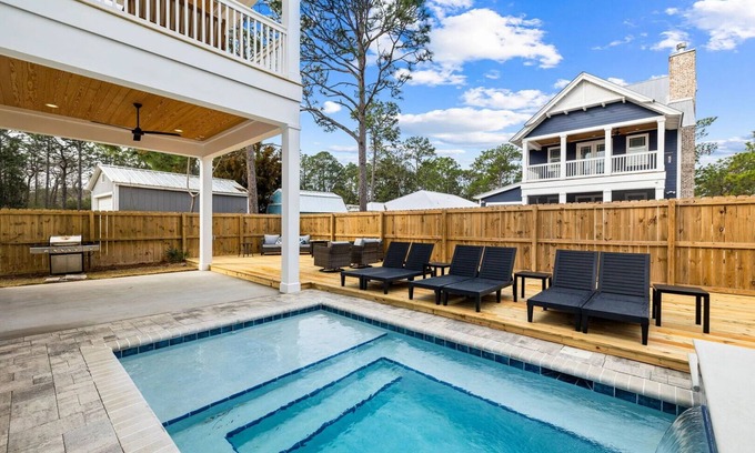 One for All is your dream vacation retreat! This brand new beach house is perfect for multiple families and is the perfect entertaining house. With 2 primary king suites, 2 Queen Rooms, and 2 custom-built bunk rooms, this lovely coastal home can easily accommodate 16. The fully stocked kitchen with stainless steel appliances has everything you need to prepare large meals or snacks for the beach. The living area has plenty of "sink-in" comfortable seating and a large flat screen TV that's perfect for watching a family movie or sporting event. If you need a break from the beach or just want a relaxing evening, the large usable outdoor living space will not disappoint. The private backyard includes an oversized deck, dipping pool with jacuzzi features, lounge chairs and a gas grill. One for All is also a perfect home for the boaters looking to explore great fishing, both in Choctawhatchee Bay and offshore in the Gulf of Mexico, for an experience that will last a lifetime.