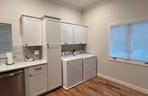 New private guest house in established upscale neighborhood. 1 bedroom with king size bed PLUS a double Murphy Bed in the living room. Fully stocked kitchen and laundry area. Open concept living area with smart tv and free wifi. Parking in front of guest house with keypad entry.