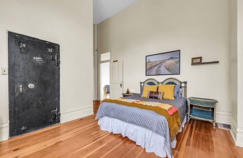 The courthouse has a covered pavilion, expansive lawns and huge trees perfect for outdoor activities and offering plenty of room to park RVs or pitch tents. An outdoor fire pit with wood is provided along with two barbecue grills, plenty of comfortable chairs and picnic benches. Our large toy shed will keep the kids entertained with volleyball, horseshoes, badminton, croquet and other fun. A full-size playground awaits just down the street at the town park. Smoking allowed outside only please.