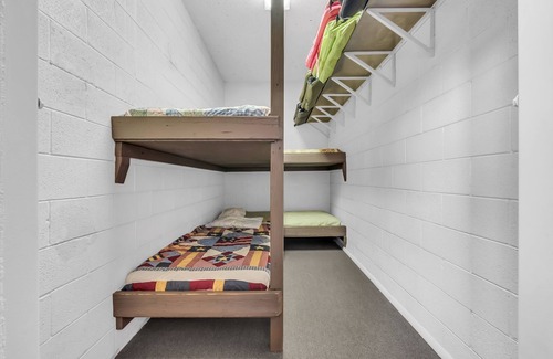 The spacious courthouse boasts 9 bedrooms, 4 1/2 baths, a full-size kitchen and a large dining room as well as the huge original court room equipped with a giant fireplace, air hockey, Foosball, pool table, TV, movies, and the beautiful, handmade original judge’s bench. Couches, chairs and sleeping mats make this room a big hit. One of the five large walk-in vaults is actually a four bed bunk room kids always love. Perhaps the most interesting room is the library with its loft and 20 foot tall ceilings loaded with books, puzzles and a chess set, plus a beautiful view of Junction’s main street below.
