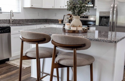 Creek View Cottage is a brand new rental located in Cynthiana, KY. You'll love the convenient location of our home and its proximity to food and shopping. There is an open floor plan with a cozy living/dining area and a kitchen stocked with the basics for cooking. There is a master suite with a queen-sized bed and an attached bathroom, another bedroom with a queen-sized bed, a third bedroom with a full-sized bed, and another full bathroom. You'll find our home sparkling clean and beautifully decorated, making it the perfect spot for your next work trip or getaway with loved ones.