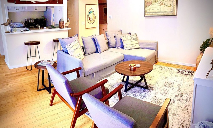 - 2 Modern Homes, 5-Star Reviews. Walk: Priv Beach, Shops, Dining, Mini-Golf, More
