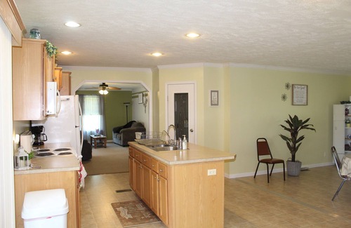 Oak Ridge Retreat is a charming rental located in Crofton KY and is conveniently located 10 miles from Pennyrile State Park and 30 miles from KY lake. You'll find it cozy and inviting and the perfect place to unwind and put up your feet. All one level and nicely laid out, it's suitable for anyone with young children or for seniors. There's a kitchen furnished with the basics for cooking and baking, a dining area, a cozy living room with lots of comfortable seating. There is a master suite with a queen bed and an attached bathroom, another full bathroom, a bedroom with a queen-sized bed and another one with a full-sized bed. There is also a laundry room equipped for your laundry needs. The clean and homey atmosphere makes this the perfect place to get away and connect with your loved ones.