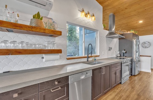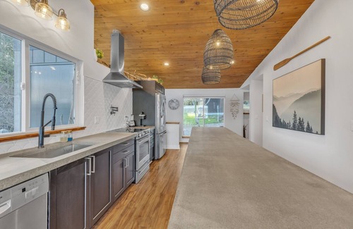Fully remodeled beach house with all the amenities for a comfortable stay. Now offering the entire home for rent. For the last two years we have only rented the upper portion of the house. After a slow remodel the whole house is ready for your stay. This three-bedroom home sleeps 9 and has two full bathrooms. Easy access to the beach where there are 5 kayaks and two stand up paddle boards for exploring the sound and Filucy Bay. At low tide explore the beach combing for sanddollars, shells and more! The home is equipped with a gourmet kitchen that is well appointed. Enjoy indoor outdoor style living with the glass garage door on the lower level. The home is on almost two acres of land for you to stretch your legs or throw a ball to your dog. Several parks are nearby including 360 park, Joemma Park, Penrose Point Park and Tayor Bay Park. Gig Harbor is only 22 miles from Longbranch with much to do and explore. Best of all if you just want a quiet peaceful vacation just relaxing at the beach house is the place.