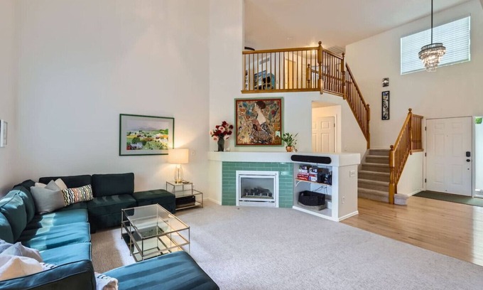 The whole family can relax in this spacious 2,600 sq. ft. home. This 3-story house features 4 bedrooms, 4 bathrooms, and sleeps 9. The open living room has vaulted ceilings and great natural light. The master bedroom has a king bed, and the master bath includes a Jacuzzi tub. 2 queen beds, a full, and a twin offer plenty of sleeping space. A dedicated office w/ two desks keeps work easy. Enjoy a big backyard & back patio with outdoor dining. Centrally located, it's just 20 minutes from Boulder.