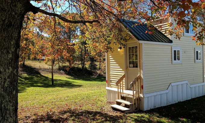 Queen bed is in the loft accessible from a pull down ladder (limited heightin the loft). We always stock our tiny houses with all bed linens, bathroom towels, soap, and toilet paper. The kitchenette has a hot plate, microwave, coffee maker, and a mini refrigerator/freezer. We do supply 1 pot and 1 pan, disposable dishes, utensils, cups, and coffee. There is a television but no satellite or cable TV. Feel free to bring your own DVD player, games, etc. and cords as we do not supply cords for devices. Outside, you have your own picnic table and fire ring. You can cook on the fire ring and later push aside the grate to sit around the fire. Firewood is for sale as well.