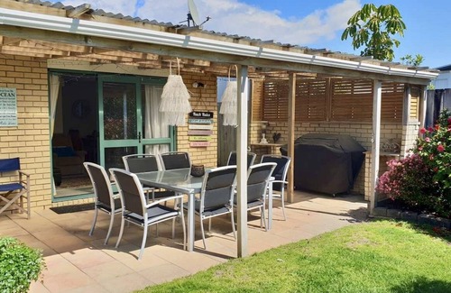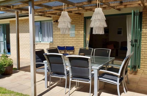 Sunny 3-bedroom house with a separate garage-games room, which has a set of bunks. It is on a rear section so is quiet and safe. There is room to park a boat on the section.